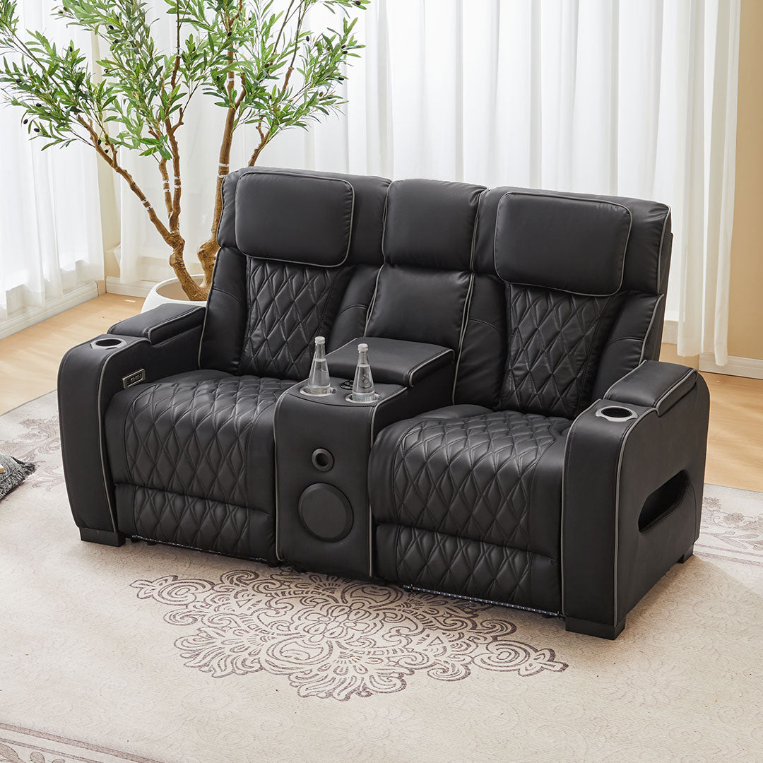 2 Seat Air Leather Recliner With Cup Holder For Living Room - 8456