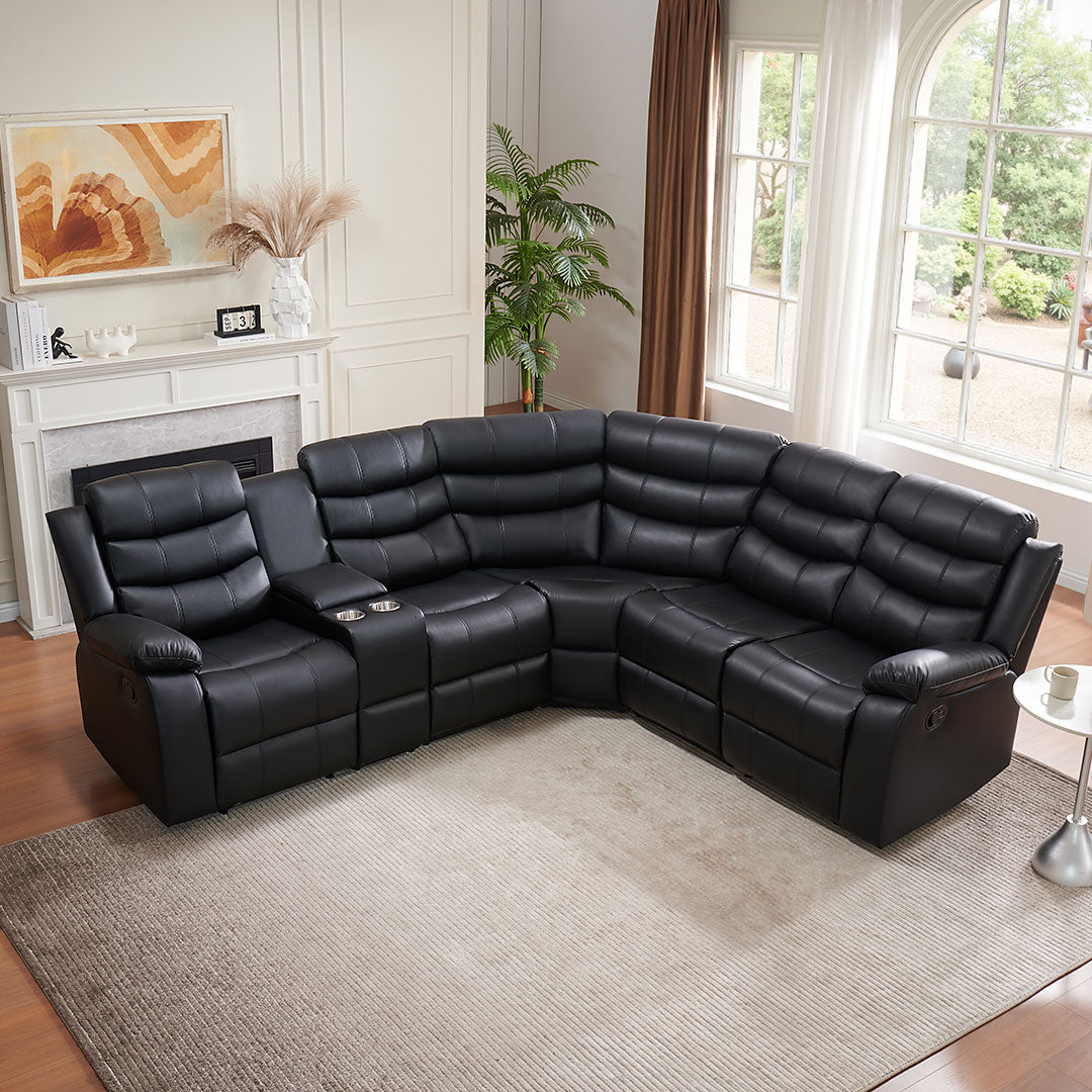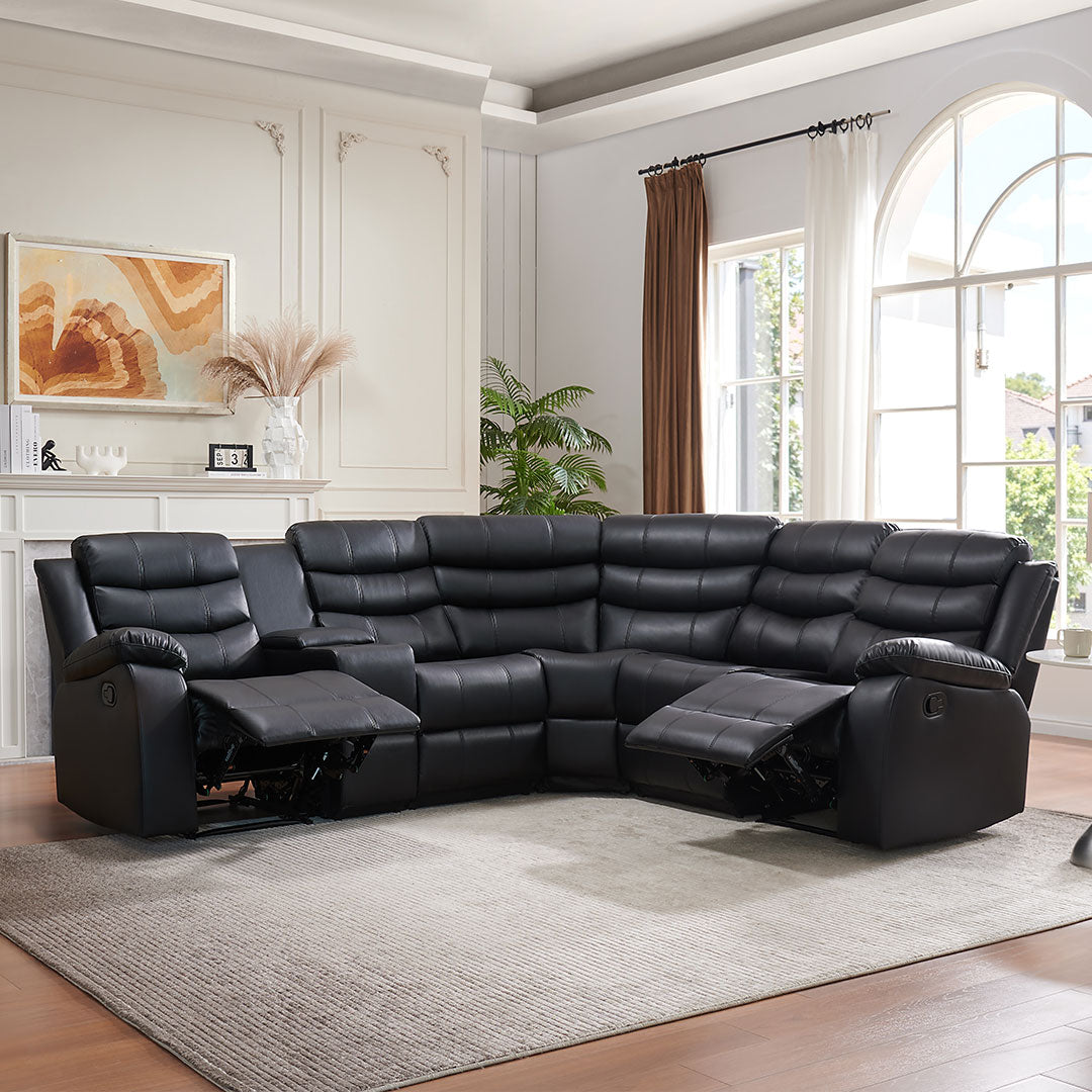 Comfortable Air Leather Black Recliner Sectional - Model 8005