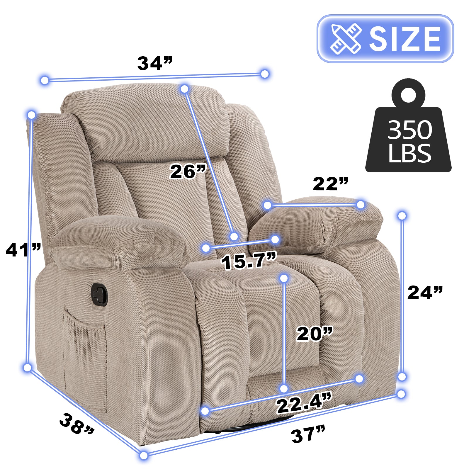 Our recliners support up to 350 lbs, with reinforced frames and heavy-duty mechanisms for long-term use.